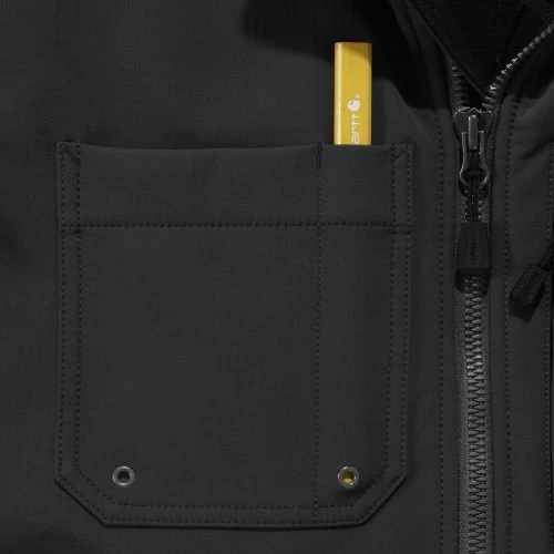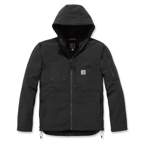 Ce blouson Softshell à capuche de Carhartt résiste au vent et déperlant.