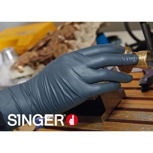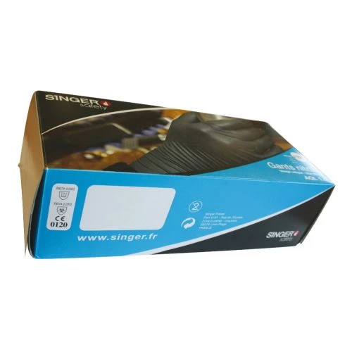 Ces gants nitrile Singer AUU5000 sont des gants ambidextres à usage unique avec une très bonne élasticité. Ils sont très bons au touché et sont idéals pour les personnes allergiques au latex. De plus, ils offrent une plus grande résistance notamment aux huiles et aux graisses que le latex ou le vinyle. Leur bord roulé pour empêche l’écoulement de liquide sur le bras ou le poignet. Enfin, les gants sont livrés dans une boîte distributrice pratique et protectrice très solide.