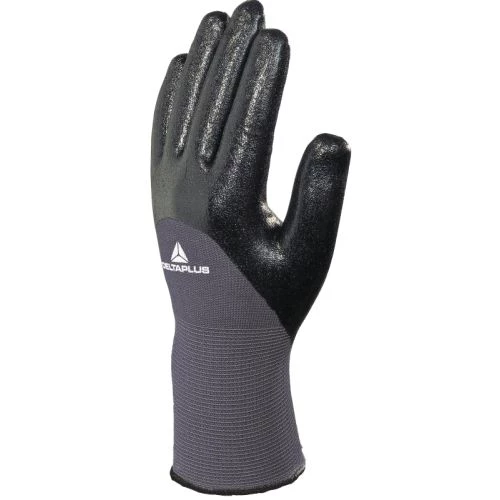 Ce gant de travail VE713 de la marque Delta Plus est en polyamide et doté d’une enduction en nitrile 3/4.
