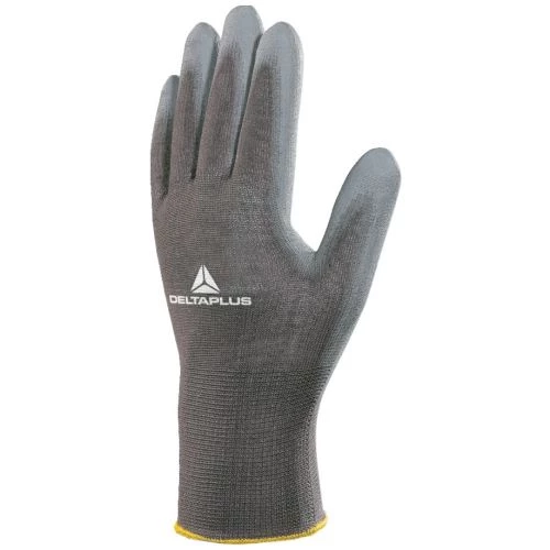 Les gants VE702PG de la marque Delta Plus sont tricotés en polyester et dotés d’une enduction en polyuréthane sur la paume et les bouts des doigts.