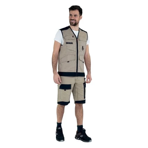 Ce gilet TROWEL 9ATTUP sans manches de Lafont est fait à base de sergé. Il est fermé par zip et possède deux poches poitrines, ainsi que deux poches basses. Il est doté également de pattes de réglage ceinture et d’un bas de dos dépassant.