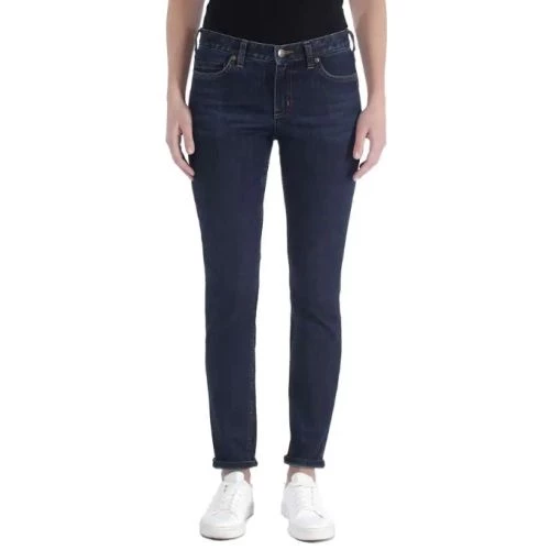 Ce jean slim-fit femme LAYTON SKINNY de Carhartt est conçu en denim extensible. Il est idéal pour grimper sur un toit ou ramper sous un évier. Ce produit offre toute la liberté de mouvement. Sa coupe ajustée au niveau des hanches et des cuisses s′arrêtant juste sous la taille.