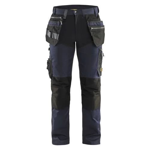 Ce pantalon artisan + stretch de la marque Blåkläder est fonctionnel et confortable avec poches facilement accessibles, y compris une poche téléphone en tissu extensible qui convient à la majorité des téléphones. Compartiment genouillères en tissu élastique CORDURA® pour un ajustement et une durabilité optimale. Les jambes précourbées offrent une coupe ajustée.