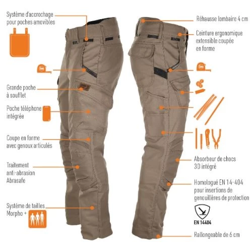 - Enduction Abrasafe sur les renforts genoux pour éviter l’usure prématurée
