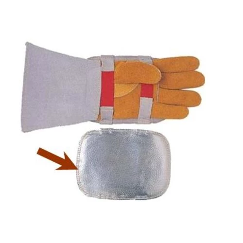 Le protège main assure une protection thermique et mécanique pour le soudeur. Confectionné en croûte de cuir d’une épaisseur de 3 mm, le protège main est maintenu en position par 2 larges velcros. Le côté extérieur est aluminisé afin de réfléchir le maximum de rayonnements. L’intégralité des coutures est réalisée en fils Kevlar.