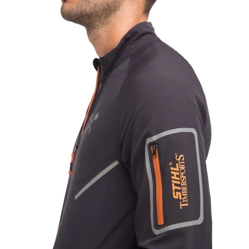 Cette veste coupe-vent unisexe ATHLETIC de Stihl est idéale pour les temps pluvieux puisqu’elle est imperméable grâce à son tissu poly-élasthanne. Elle est dotée de manches raglans et d’une fermeture éclair avec protection pour le menton. En outre, les manches et des haches croisées sur la poitrine procurent un look à la fois décontracté et sportif.